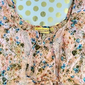 Embrace a relaxed elegance with this Princess Vera Wang blouse, featuring charming ruffles and 3/4 sleeves. The vibrant blend of orange and pink hues adds a lively touch to your ensemble, making it a versatile choice for various occasions.