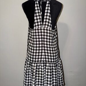 Stylish black and white checkered dress with a flared hem. Perfect for casual outings.