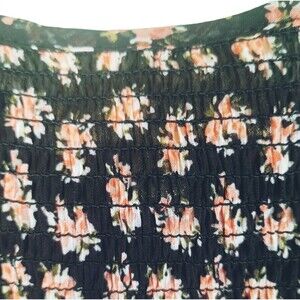 Princess Vera Wang Top Women's M Long Sleeve V-Neck Tie Smocked Sheer Black Pink Floral Boho Hippie Etheric Fairy Whimsy Goth Goblin Core