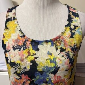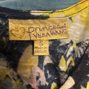 Princess Vera Wang blue and yellow floral tunic length tank top w sheer bottom