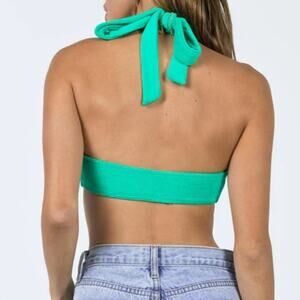 Princess polly Benni terry cloth halter tie crop top green SIZE 4/S soft trendy