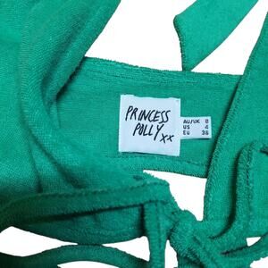 In excellent condition from princess polly size 4 fits like a small womens bright green terry cloth tie halter crop bikini style top
