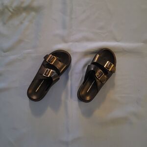 cute pre-owned princess polly sandals. some signs of wear and fading throughout. would best fit size 8