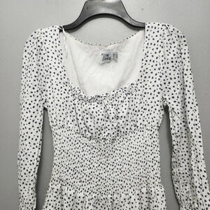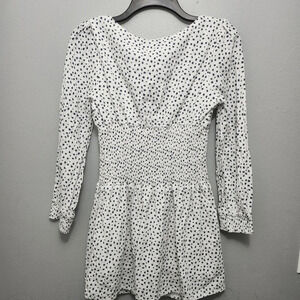 Princess polly women's mini dress size 8 white and navy blue long sleeve smocked waist