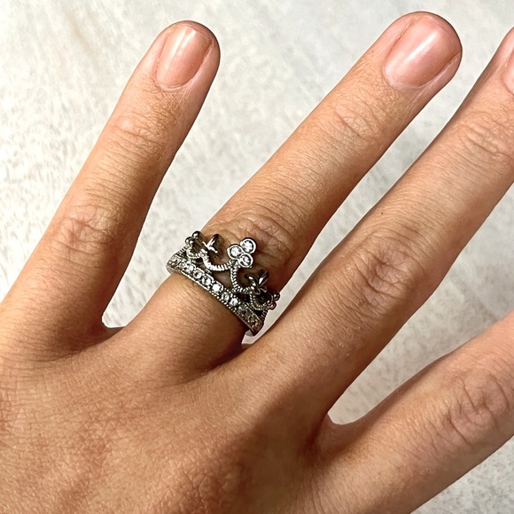 Princess ring, size 6.5. Unsure of the brand and do not recall the price as it was bought on vacation at Disney World quite a few years ago! In great condition. Wasn’t worn much. Included a video for your convenience so you can check out the ring details for yourself!