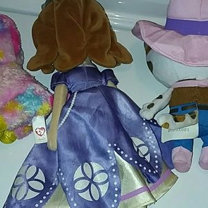 3 stuff toys. A rainbow TY unicorn and both Disney Princess doll and cat. Great for that special babygirl. In awesome condition. Ready to be played with n bought. Make me a offer