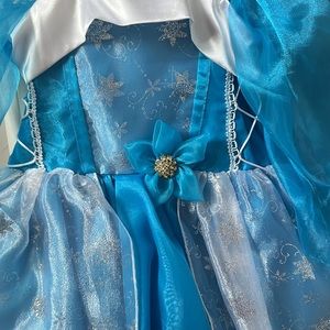 Pretty blue formal dress for girls. My daughter used it as an Elsa dress for Halloween, but could be a pageant or winter dress for a little girl as well. Listed as 3T but no tag, my TTS 3-year old fit well in it.