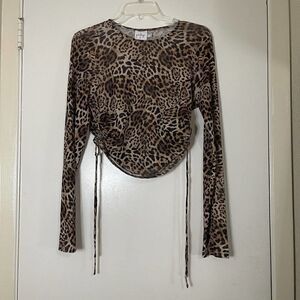 Princess Polly Cheetah leopard brown sheer long sleeve cinch side crop top