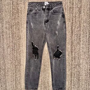 Princess Polly Women's Zaneta Ripped Jeans in Washed Black Size 2