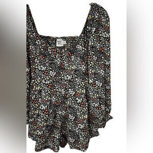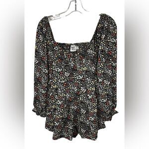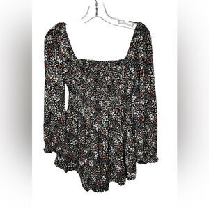 Princess Polly Romper Black 2 Floral Print puff long sleeve smocked