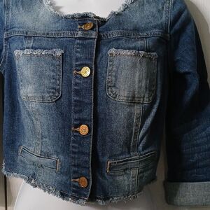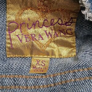 Princess Vera Wang cropped jean denim raw trim jacket Sz XS NWOT
