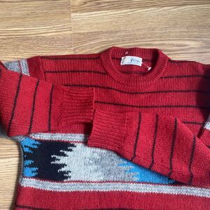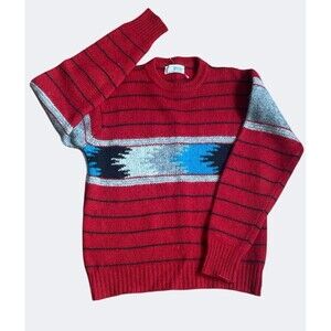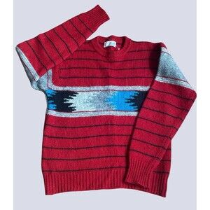 Pringle Of Scotland Rare VTG 70s Wool Long Sleeve Sweater Red Aztec NWOT