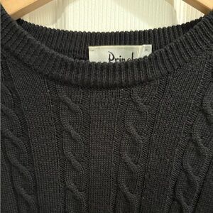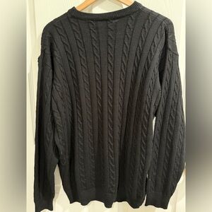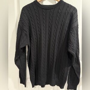 Like New Cond. Experience timeless elegance with the Pringle Black Crewneck Sweater, featuring a classic cable knit design. This sweater is crafted from a thick, warm knit material, complete with ribbed cuffs and hem for a snug fit. Its deep black color and traditional craftsmanship make it a versatile addition to any wardrobe.
