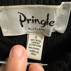 Pringle of Scotland Black Crewneck Sweater Cable Knit Extra Fine Merino Wool