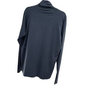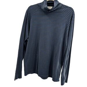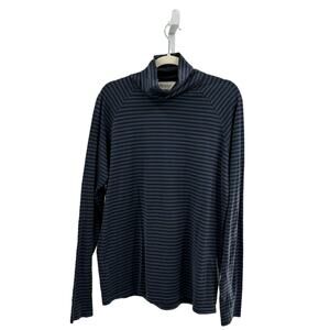 Blue striped turtleneck from Pringle of Scotland. Pulls on. Long sleeves. Thinner, soft fabric. Cotton. Dry clean only. Made in Italy. XN-E077-IT. In preowned condition.
