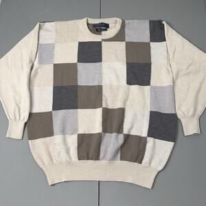 Pringle of Scotland Lambswool Sweater Mens XL Long Sleeve Check Brown Crew Neck