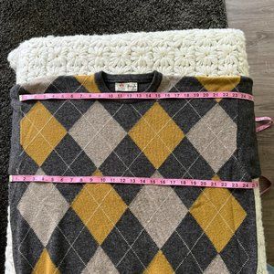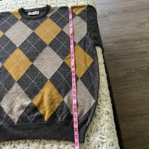 Pringle of Scotland Vintage Men's100% Lamb’s Wool Gray Argyle Sweater Large