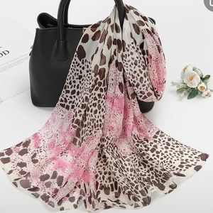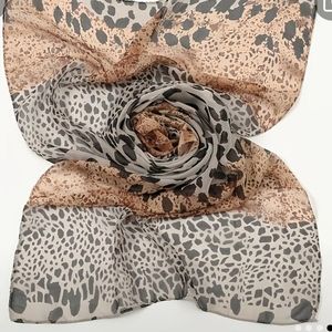 This is a gorgeous animal leopard print Polyester chiffon feel scarf.