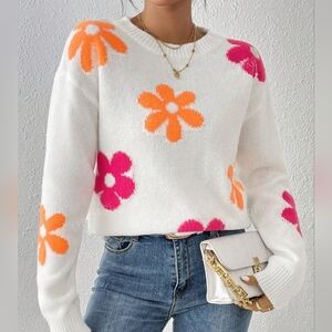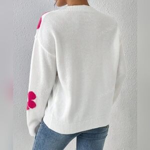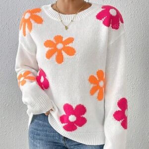 Print Round Neck Drop Shoulder Long Sleeve Casual Loose Pullover Sweater,