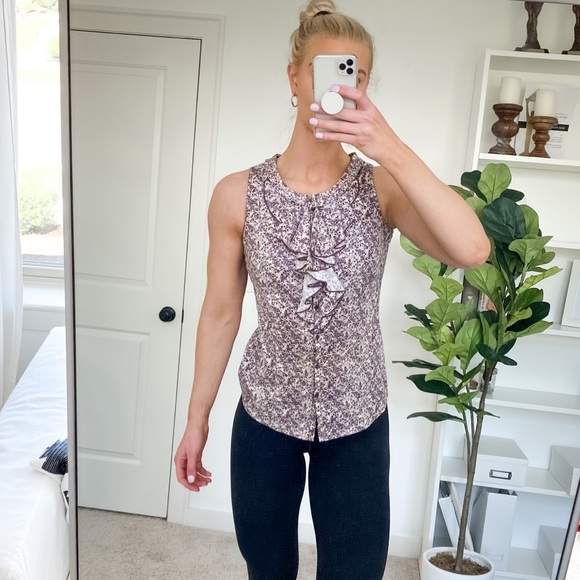 Print Ruffle Sleeveless Button-Down