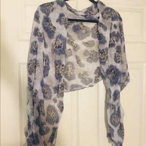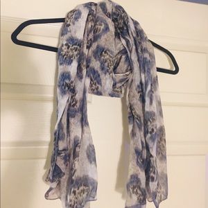 Versatile scarf and long/wide enough to become a shawl. Print is subtle and could be used with so many color tones. Very light material, yet could be wrapped few times to keep you warm.