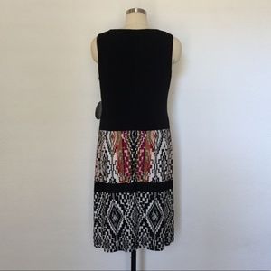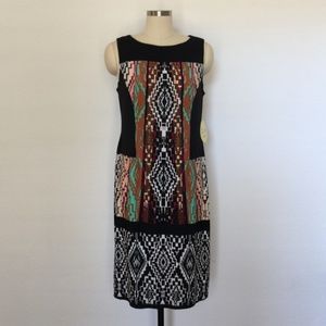 Gorgeous Sleeveless Shift Dress with mixed-media block print. Easy pull-on style that’s flattering for all body types. Knee-length. Great work dress