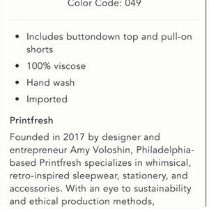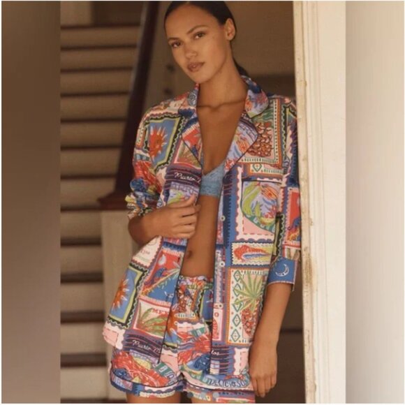 Brand new anthropologie + printfresh 100% this viscose long sleeve top shorts bottom pajama set new in bag never worn never touched