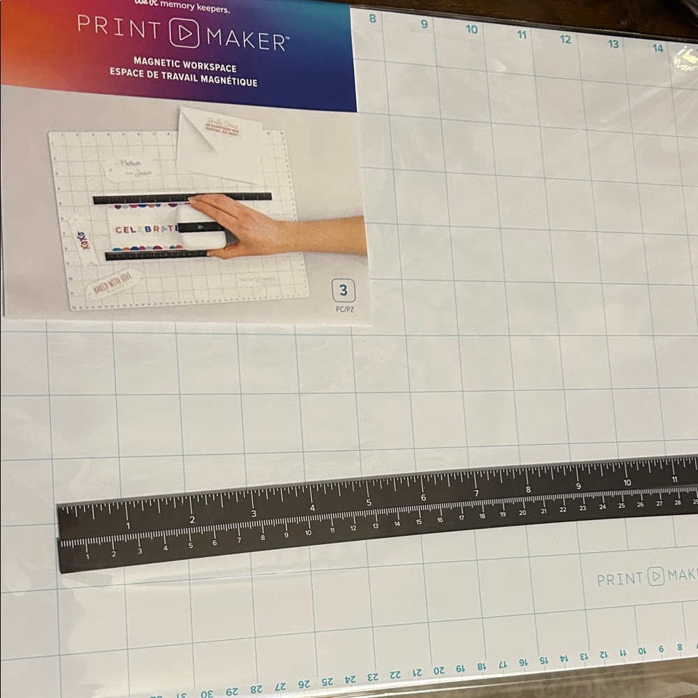 PrintMaker magnetic workspace with a black ruler. Ideal for crafting and organizing.