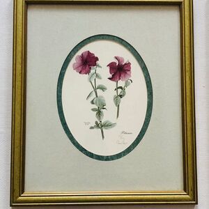 LOT of 2 Vintage Print by Carmel Foret 1989 Signed & Numbered Petunia Orchid Botanical Paragon Picture Gallery Book Plates