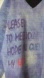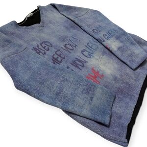 The artsy and funky oversized v-neck long sleeve sweater is ultra cozy and warm. It's a purple-blue with the lyrics "pleased to meet you! Hope you guess my name" on the front and the left sleeve.