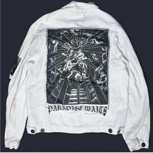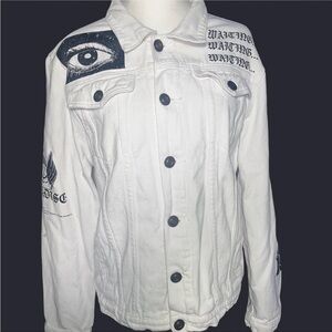 White denim jacket with black accents #goth #grunge