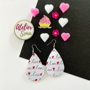 Fall in love with these lightweight earrings! These faux leather/vegan leather earrings will become your go-to accessory for date night/Valentine's day and are perfect for gifting to your Galentines! Printed on both sides with fish hook closures. Comes with rubber backs.