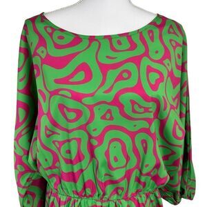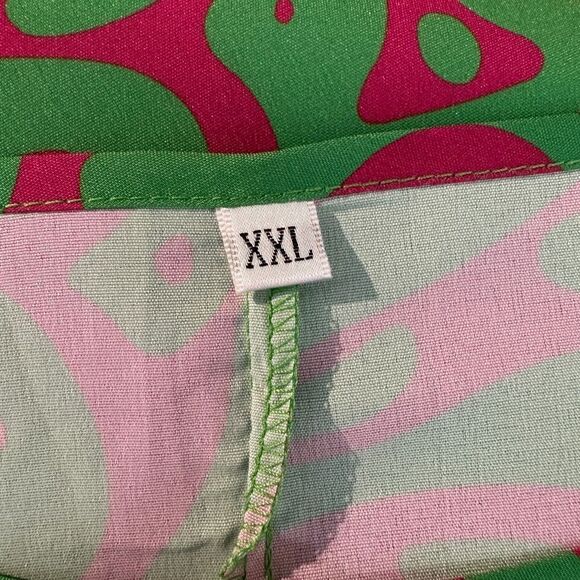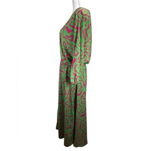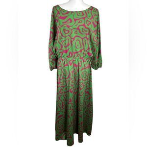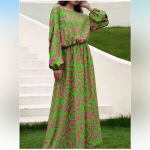 Printed Lantern Long Sleeve Loose Maxi Dress Vibrant Green Pink Size XXL