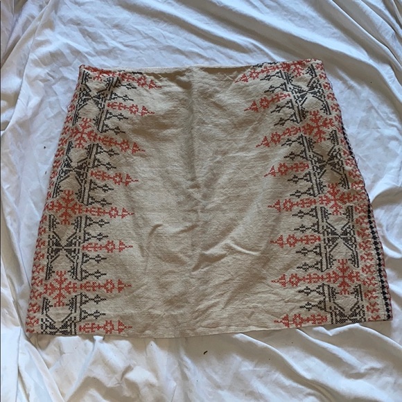 Versatile beige linen-cotton blend mini skirt with fun side detail. Side zip. Lined.
