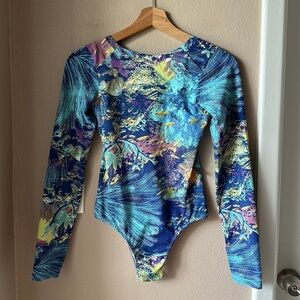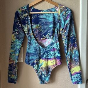 Description: Printed Long Sleeve Low Back Bodysuit