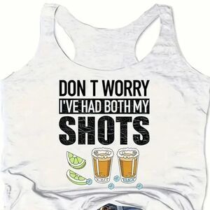 Beer And Lemon And DON'T WORRY I'VE HAD BOTH SHOTS Print Loose Tank Top, Sports Fitness Yoga Running Top, Women's Clothing