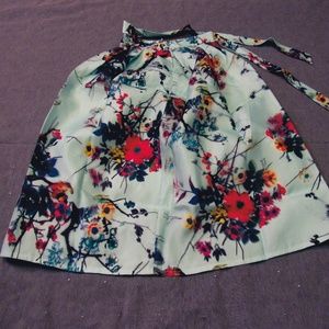 This lovely is a great find! This belted, bright blooms midi skirt will brighten any day. 100% Polyester with attached floral overlay.
