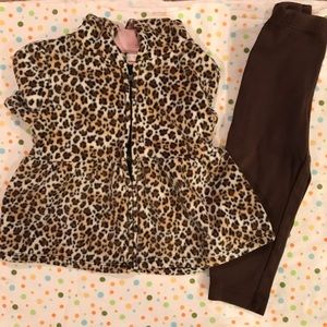 This is a sweet, very cool peplum hoodie in stylish animal print. It is super soft. Bundles with brown pants from Carters 18 mos.