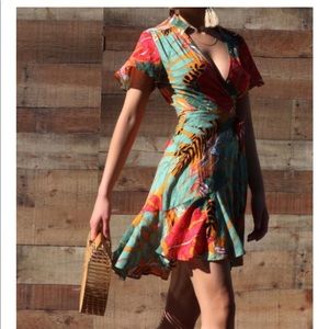 Printed Ruffled Woven Wrap Mini Dress