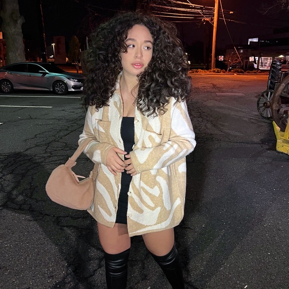 Abstract print knit shacket, worn couple times small mark on one of the elbows