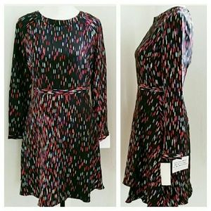 ●Round neckline, long sleeves with buttoned cuffs, nipped waist brings out the light volume of the hem. Unlined sleeves. Hidden back zip.