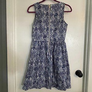Blue & White, printed dress. Perfect for summer weddings. I'm 5'3" and it hit around my knees. IT HAS POCKETS!!!
