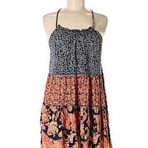 Sundress with three panels of different prints, spaghetti straps and very light weight. Can go down a size due to flowy characteristic of the cut of the dress. Bought at LF, brand is Dream State. Never worn but tags are off.