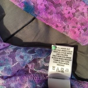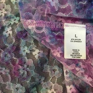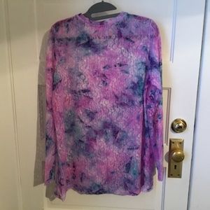 Printed Tie-Dye Sheer Lace Top - Purple Heather L