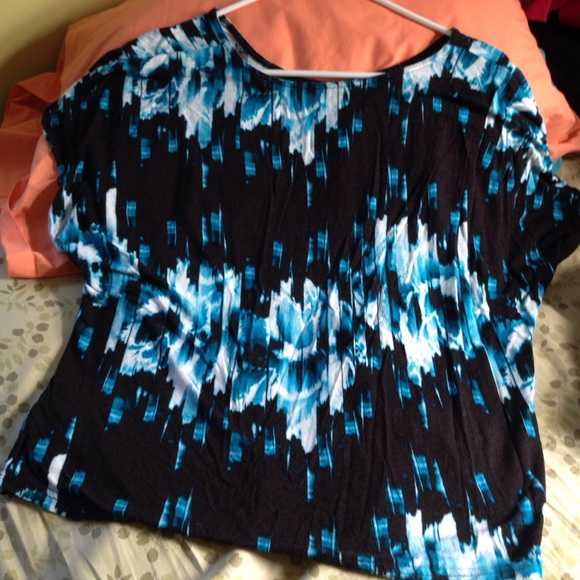 Super funky and fun flowy top. No tag but I would say a size medium. Lightly pilly.