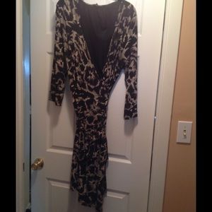 Navy blue wrap dress with all over gentle tan floral print. Banana Republic. Soft and pretty. Worn once.