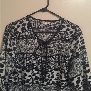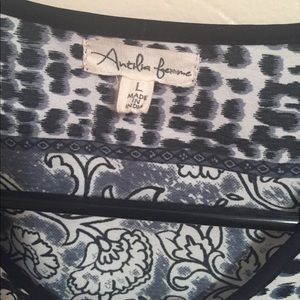 Gorgeous gray, black, and blue printed blouse. Comfortable fabric to allow for style while maintaining professional look
