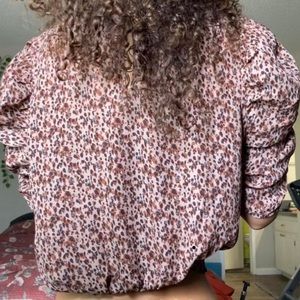 3/4 sleeve, slightly cropped, ruched bottom, lightweight, business casual