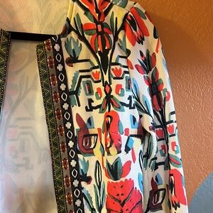 Printed 3/4 sleeve jacket. Lightweight and great for pairing with a dress or jeans. Size small