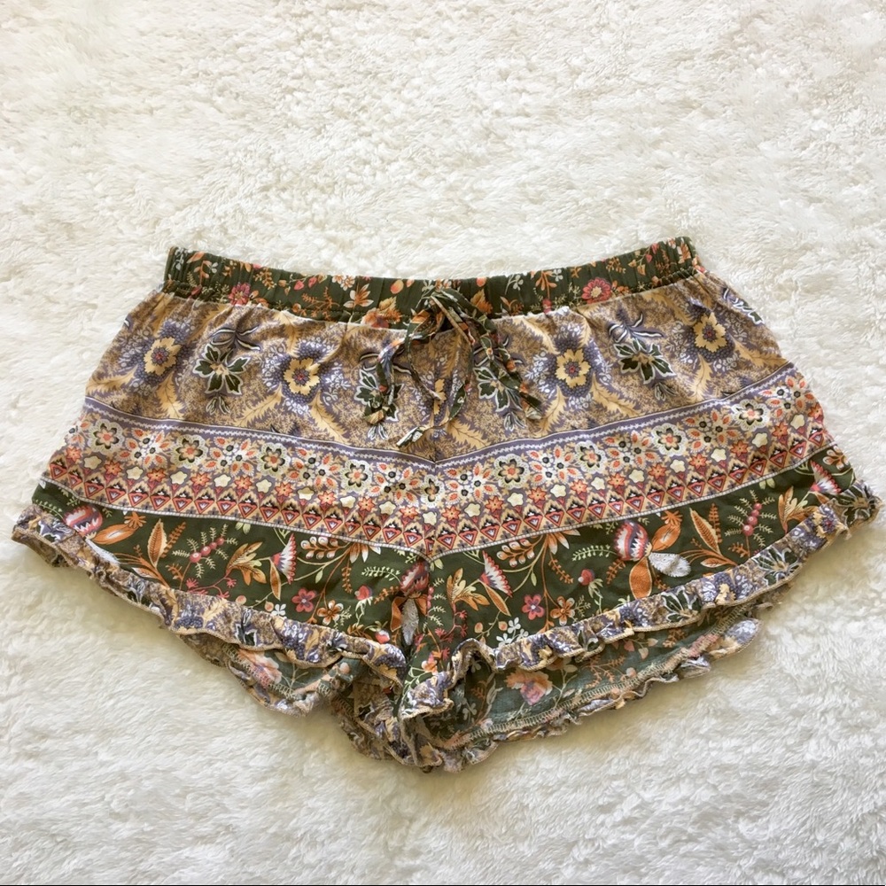 Printed Light Weight Ruffle Shorts